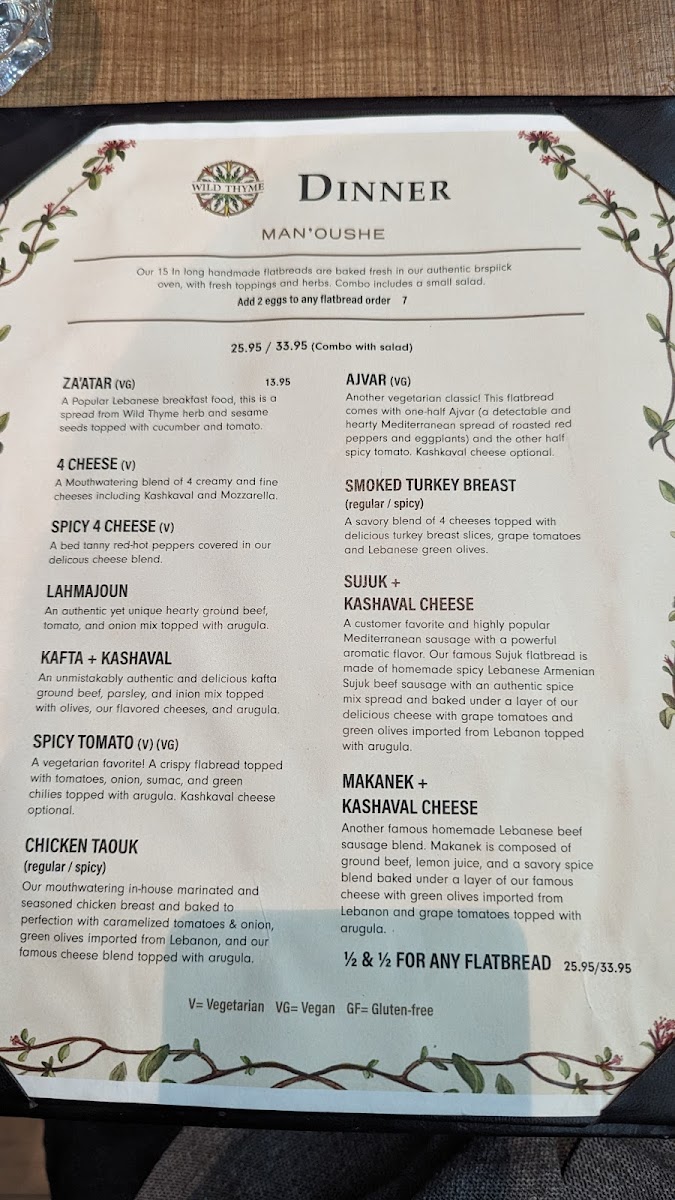 Welcome to Wild Thyme, a culinary gem nestled in New Westminster, BC. Known for its warm hospitality and inviting atmosphere, this eatery promises an exceptional dining experience. The menu is a delightful showcase of flavors, featuring standout items like the renowned pita bread accompanied by four delectable dips: hummus, garlic, yogurt, and eggplant. Customers rave about the generous portions, making it ideal for sharing.